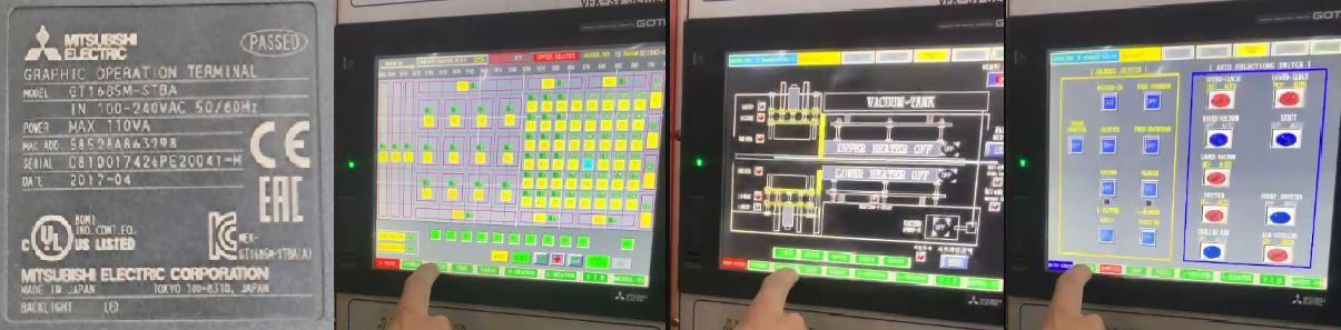- Tình trạng: HMI lỗi cảm ứng một số điểm bấm không nhận, một số điểm bấm bị lệch