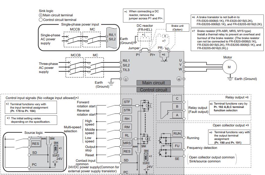 2. Sơ đồ đấu nối biến tần Mitsubishi FR-E820-0.75K-1