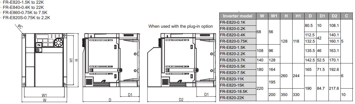3. Kích thước biến tần Mitsubishi FR-E820-1.5K-1
